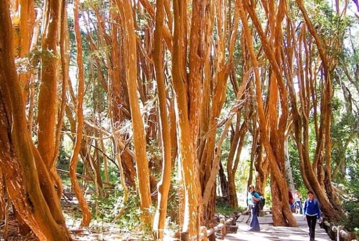 El único arrayanal arbóreo del mundo que puede ser visitado, se encuentra en el extremo sur de la Península de Quetrihue, dentro del Parque Nacional Los Arrayanes.