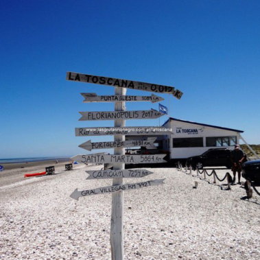 A unos 60 kilómetros de allí está Las Grutas con sus aguas azules que aparecen en el horizonte frente a las playas colmadas de piletones de agua tibia, además es ideal para los amantes de la gastronomía, existen paradores en la costa donde se puede disfrutar de ricos platos y la pesca del día.